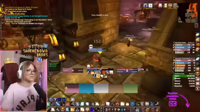 03:38:05Die Streamgruppe betritt einen Dungeon und der Fokus liegt auf der Organisation und der Taktik. Es wird die Gruppenzusammensetzung besprochen, welche ausschließlich aus Nachtelfen besteht, was zu Herausforderungen führt. Der Streamer ist verwundert über seine geringen Schadenszahlen im Vergleich zu anderen. Die Gruppe muss sich auf bestimmte Bosse vorbereiten und es wird über die Rollenverteilung gesprochen, insbesondere wer die Aggression der Monster auf sich ziehen und wer heilen soll.