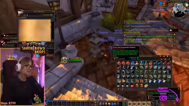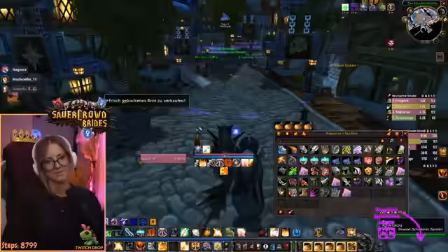 03:41:03Die Streamerin ist aktiv damit beschäftigt, Nahrung für die Gruppe zu beschaffen, insbesondere 'Beweglichkeit'-Essen, um die Kampfkraft zu verbessern. Gleichzeitig sammelt sie Rohstoffe wie 'Mithrilröhr' und 'Aquamarin' für ein Rezept. Sie führt die Gruppe durch Desolace, verzeichnet aber gleichzeitig den Zeitdruck und die Notwendigkeit, effizient zu leveln und zu questen, um die anstehenden World Buffs nicht zu verpassen.