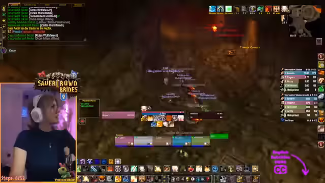 04:54:34Zunächst konzentriert sich der Streamer auf das Sammeln spezifischer Boss-Items in einem Dungeon. Er benennt die benötigten Bosse wie den Gorosh und den Zerstörer und plant, die Esport-Quest sowie die Shatterpriest-Boss-Quest zu machen. Bei der Bank werden bestimmte Gegner gezielt angezogen. Der Streamer äußert leichte Nervosität vor der bevorstehenden Escort-Quest und prüft bereits alternative Ausrüstungsgegenstände für seine Mitspieler. Gemeinsam wird entschieden, welche Quests angenommen und abgegeben werden, um effizient voranzukommen.