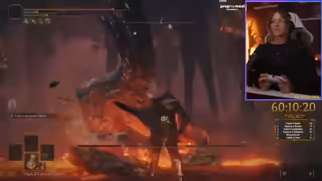 05:09:05Der Streamer kämpft gegen einen weiteren Boss, die rollende Königin. Dieser Boss hat komplexe Angriffsmuster, insbesondere seine Roll- und Spring-Attacken. Der Streamer muss lernen, diese Angriffe auszuweichen. Er experimentiert mit verschiedenen Waffentaktiken und entscheidet sich, seine Waffe zweihändig zu führen, um mehr Schaden zu verursachen. Nach mehreren Versuchen gelingt es ihm, die rollende Königin zu besiegen.