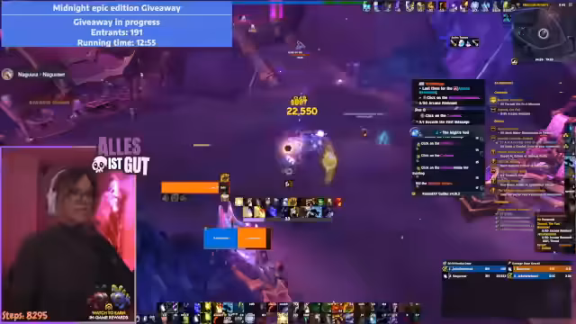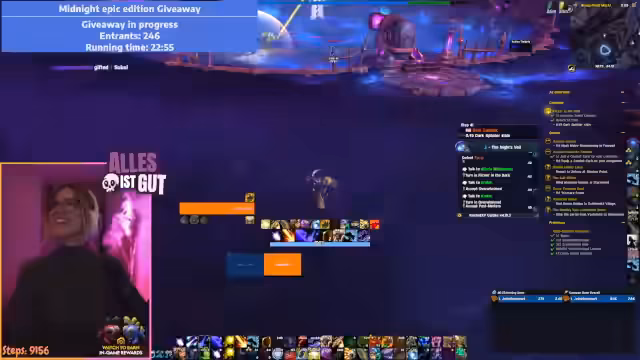 03:10:06Zur Unterhaltung der Community wird ein Midnight Epic Edition Giveaway veranstaltet. Die Zuschauer wurden aufgefordert, ein Ausrufezeichen in den Chat zu schreiben, um teilzunehmen. Die Verlosung wird bewusst für eine längere Zeit offen gehalten, um allen die Chance zu geben, teilzunehmen. Der Gewinner erhält eine hochwertige Version des Spiels.