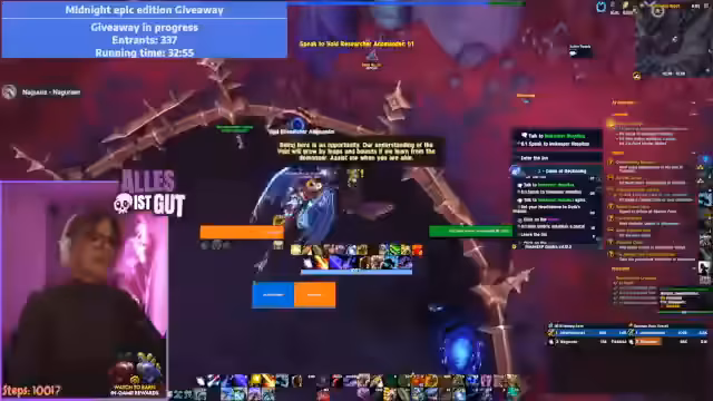 03:40:51Ein Giveaway für eine epische Midnight Edition wird durchgeführt. Der Gewinner wird durch einen Würfelvorgang ermittelt, da es technisch Schwierigkeiten gab, den Preisträger direkt zu benachrichtigen. Parallel dazu kämpft der Streamer gegen Bossgegner, wobei er auf Quest-Probleme stößt, die ihn als Tank isolieren, während seine Gruppenmitglieder auf andere Aufgaben verteilt sind.