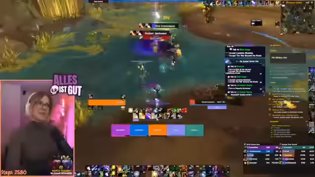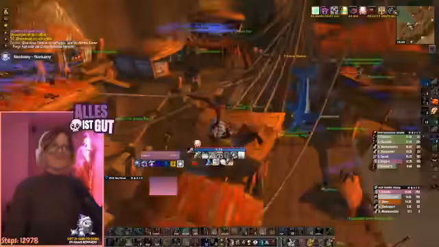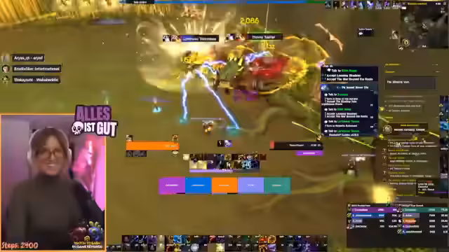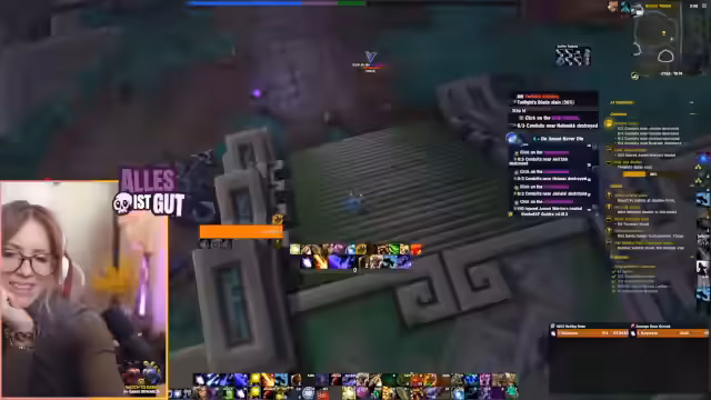 01:34:04Der Streamer bemerkt, dass ein Gruppenmitglied, Kaija, nur Level 89 ist, was er als 'peinlich' bezeichnet. Dies führt zu einer kurzen Diskussion über die Level-Route in Sokas und die Priorisierung des Bosskampfs über den Score in M-Plus-Dungeons. Es wird der Wunsch geäußert, möglichst viele Leute Level 90 zu haben, um gemeinsam gegen den neuen Delph-Boss antreten zu können. Die Leistung im Dungeon wird ebenfalls kurz kommentiert, wobei festgestellt wird, dass der Streamer mehr Schaden anrichtet als alle anderen zusammen.