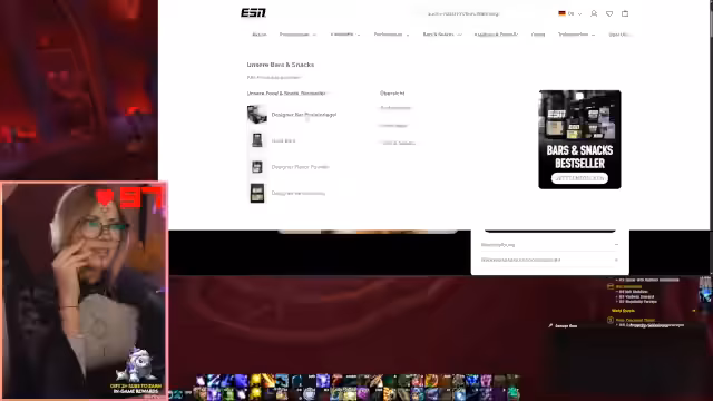 05:40:54Bevor sie den Stream wechselt, erwähnt die Streamerin einen Sponsor-Deal mit ESN. Sie empfiehlt den Zuschauern, ihren Code für maximalen Rabatt zu verwenden, wenn sie bei ESN bestellen, da sie eine Provision erhält. Sie weist auf eine laufende Aktion hin, die ab dem nächsten Tag beginnt und Rabatte auf Designer Bars und Flexpresso-Kaffee-Pulversorten umfasst. Sie teilt ihre Erfahrungen mit den Produkten, insbesondere dem zu süßen Flexpresso, und gibt Tipps, wie man den Geschmack anpassen kann.
