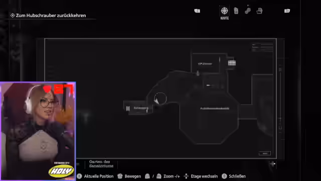 00:26:08Die Story dreht sich um Grace, deren Mutter als FBI-Agentin im Hotel ums Leben kam. Grace muss die Wahrheit über den Tod ihrer Mutter recherchieren, stößt aber auf besessene Menschen und Kreaturen. Das Hauptziel ist, ein blindes Mädchen zu retten, das in einem Glasgefängnis eingeschlossen ist. Die Streamerin muss durch die alte Klinik des Hotels navigieren und dabei einem Antagonisten namens Victor ausweichen, um dem Mädchen beizustehen.