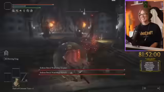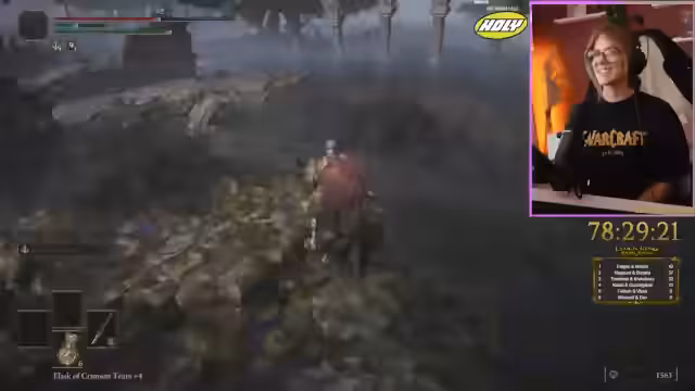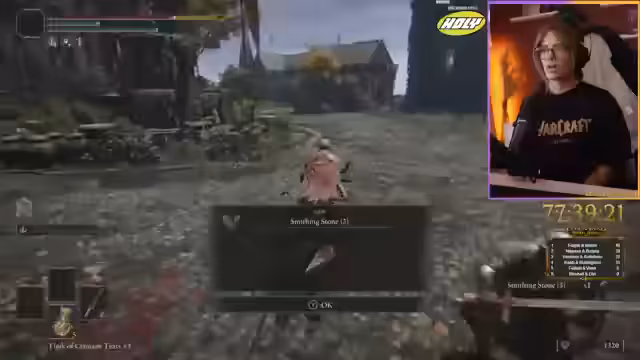 06:23:14Der Streamer erkundet eine neue Zone und sucht nach großen Smitting Stones, ohne deren genaue Verstecke zu kennen. Er stößt auf einen Boss mit langsamen Animationen, was ihn überrascht, und sammelt Anker. Bei der weiteren Erkundung findet er eine geheime Passage und eine Grace, wobei er Schwierigkeiten beim Navigieren in einem dunklen Labyrinth hat. Er trifft auf Händler, kauft wichtige Ressourcen und steigert seine Fähigkeiten.
