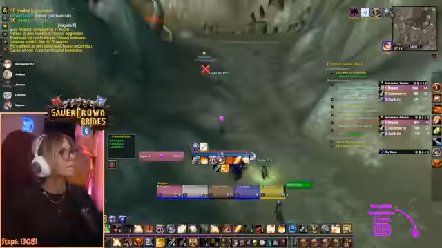 05:06:38Der Streamer und seine Gruppe spielen World of Warcraft auf einem Classic Hardcore Server. Es wird koordiniert, wie die Gruppe an den nächsten Flugpunkten in Desolace gelangen kann. Man entscheidet, dass das Laufen zu umständlich ist und jemand per Einladung portiert wird. Ziel ist es, die Dungeons 'Friedhof' und 'Bibliothek' zu absolvieren, da diese keinen Schlüssel benötigen.