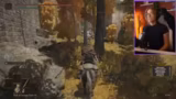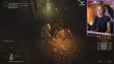 04:59:40Nach mehreren gescheiterten Versuchen gegen den Boss erkundet der Streamer die Umgebung, um einen besseren Zugang zum Boss zu finden. Er sucht nach einem versteckten Weg und trifft auf verschiedene Gegner wie untote Leute und Riesen mit Speeren. Dabei gerät er in einige gefährliche Situationen und findet schließlich einen Grace-Punkt, um seine Ressourcen aufzufüllen. Die Erkundung wird durch technische Probleme wie Ladezeiten erschwert.