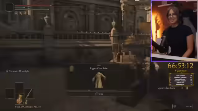 09:13:31Nach dem Ausscheiden beim Bosskampf erkundet der Streamer weiter die Spielwelt und stößt auf eine mysteriöse, leere Region mit roten Flecken und 'Grey-Singern'. Er beschreibt die Atmosphäre als unheimlich und erkundet ein Labyrinth-ähnliches Gebiet. Dabei findet er verschiedene Items und einen Aufzug, der ihn zu einer neuen Zone bringt. Der Streamer erwähnt seine eingeschränkte Spielzeit von 100 Stunden in drei Wochen und kündigt für die Folgetage Abwesenheit an.