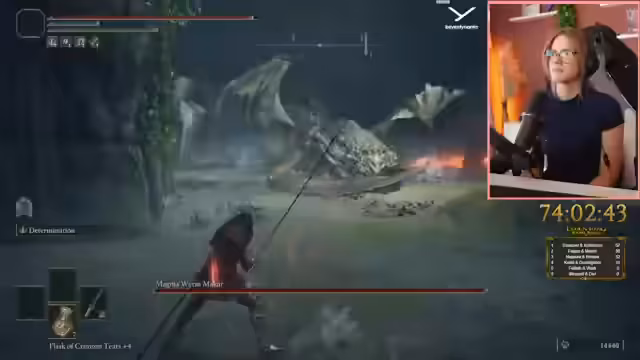 01:50:31Der Streamer kämpft gegen einen Drachenboss, der sich durch seine Größe und spektakuläre Angriffe als besonders herausfordernd erweist. Dabei muss er Lava-Attacken ausweichen und versucht, mit guten Positionierungsvorteilen zu punkten. Trotzdem erleidet er hohe Schäden und stirbt mehrmals. Parallel dazu muss er sich mit Sängerinnen herumärgern, die seinen Fortschritt behindern, und sucht nach Wegen, diese zu umgehen oder auszuschalten.