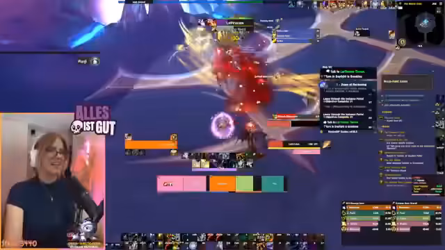 04:37:11Der Kampf beginnt chaotisch, mit schnellem Übergang von Phase 1 zu 2 und einigen Todesfällen. Nach der Landung in Phase 2 wird die Agro-Verwaltung zum Hauptthema, und der Schaden muss gestoppt werden, damit Nagura die Kontrolle zurückgewinnen. Nachdem Onyxia besiegt ist, gibt es eine emotionale Feier. Das Loot wird gerollt, und ein fröhliches Gruppenfoto vor dem Boss wird gemacht, das den triumphalen Abschluss des Raids markiert.