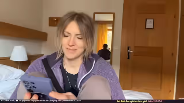 04:55:02Nach der Rodeltour warten die Teilnehmer auf den Bus, der sie zurückfährt. Der Streamer nutzt die Wartezeit, um den Tandem-Piloten Ruben wegen des Paraglidings anzurufen, da dieser nicht vor Ort ist. Ruben antwortet nicht, daher muss der Streamer eine Alternative für den nächsten Tag finden. Er entscheidet sich dafür, stattdessen zu Skifahren zu gehen, da das Wetter für Paragliden nicht ideal ist und der Tandempilot nicht verfügbar ist. Der Streamer zeigt sich trotz allem flexibel und positiv gestimmt für den restlichen Tag.
