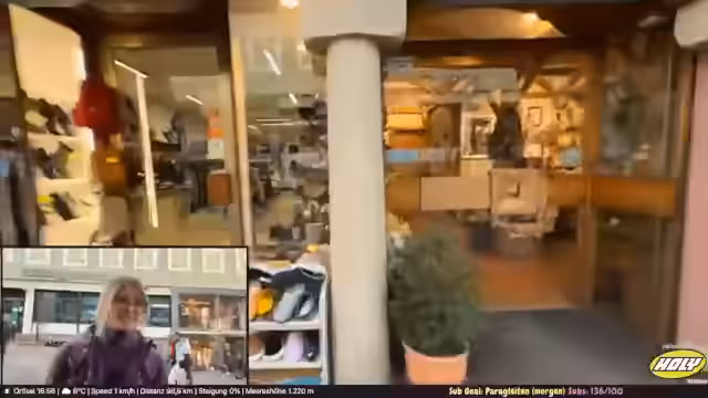 06:53:26Nachdem der Streamer feststellt, er sei noch nie richtig in St. Ulrich gewesen und nur durchgefahren, wird ein Spaziergang durch das Dorf in Betracht gezogen. Der Wunsch nach etwas Warmem, idealerweise einem alkoholischen Getränk, führt zur Erwähnung von Optionen wie Apfelglühmix oder warmem Hugo. Während der Suche nach einer passenden Bar fällt eine Holzschnitzerei auf, die als typisches lok Kunsthandwerk vorgestellt wird.
