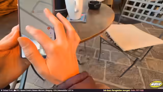 04:56:43Der Streamer steht vor der Herausforderung, die weiteren Aktivitäten zu planen. Er überlegt, ob er Skifahren oder Paragleiten betreiben soll. Das Problem: Er hat keine Skiausrüstung dabei, was das Paragleiten mit Skiern unmöglich macht. Die Überlegung, die Skier oben zu lassen und danach abzuholen, scheint kompliziert. Er entscheidet, bei einem Tandem-Piloten anzurufen, um einen möglichen Flug für den nächsten Tag zu organisieren.