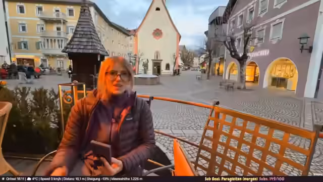 00:08:52Der Streamer stellt den Plan für den Tag vor: Ein Roadtrip ins Dolomiten-Tal Gröden in St. Ulrich. Da es anfangs etwas kalt und trüb ist, soll heute mit dem Rodeln begonnen werden. Für den nächsten Tag sind Skifahren und bei Erreichen eines Subgoals von 100 Abonnenten eventuell ein Paraglitt-Flug geplant. Er erwähnt, dass Paragliten ein teures Hobby ist und er dies selbst noch nicht kann, aber dies in Erwägung zieht, falls ein Tandempilot gefunden werden kann.