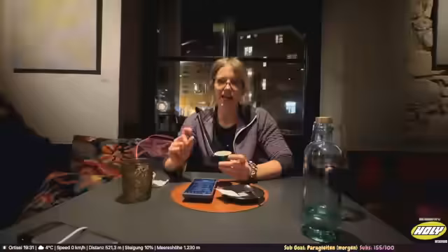 09:52:30Nachdem der Streamer die Rechnung beglichen hat, gibt es einen humorvollen Moment, als der Kellner fragte, ob er die Kamera aus Werbezwecken nutze. Der Streamer beendet den Abend mit einem Dank an die Zuschauer und einem Ausblick auf den nächsten Tag, der früh mit Skifahren und danach Paragleiten in den Dolomiten verbringen wird. Er bittet die Community, ihm auf den Social-Media-Kanälen zu folgen, und verabschiedet sich bis zum nächsten Stream.