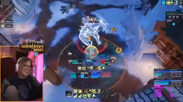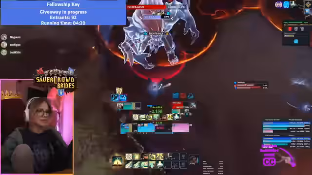 01:20:12Vor einem besonders schwierigen Boss findet ein kurzer Strategietalk statt. Die Mechanik des Bosses wird detailliert erklärt: Er wechselt zwischen zwei Auren, bei denen sich die Spieler entweder bewegen müssen oder unbedingt stillstehen müssen. Zusätzlich hinterlässt er gefährliche Bodenflächen. Die Gruppe muss sich also konstant anpassen. Trotz der Vorbereitung scheitert der Versuch und einige Spieler, inklusive des Streamers, sterben, was zu einem 'Y'-Moment führt.