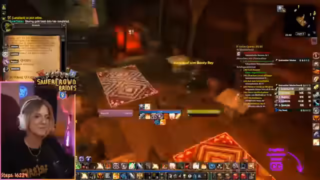 10:16:30Es wird über den Fortschritt bei der Questreihe der verschollenen Zwerge gesprochen, wobei ein Engpass bei der Beschaffung von Silberbarren für alle Gruppenmitglieder besteht. Nebenbei werden mehrere Nebenquests wie die Beschaffung von Pilzen und Vasen erwähnt, die im Dungeon abgegeben werden können. Die Streamerin gibt Hinweise, wie man Quests effizient teilt und welche man in Booty Bay wieder abnehmen kann.