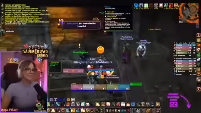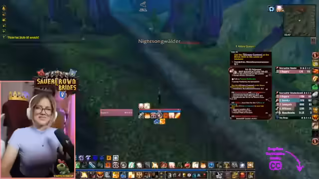 01:23:03Nach einem Dungeon-Abenteuer beim „Schmuck nackst“ erkundet der Streamer den Teufelswald. Er macht sich Gedanken über die, die auf Level 60 aufsteigen und nicht mehr an Dungeons teilnehmen können. Gemeinsam mit anderen Spielern versucht er, eine Escort-Quest zu bewältigen, bei der sie einen Elite-Mob bekämpfen müssen. Es kommt zu einigen Tücken, wie dem unerwarteten Auftauchen eines Elites und der komplexen Anordnung der Gegner. Sie müssen sich strategisch positionieren und planen, den Bereich zu säubern, ohne zu viel Aggro zu ziehen.