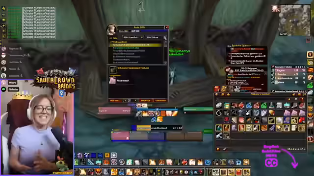 03:14:47Der Streamer ist in Berlin und kann nicht mit der Gruppe interagieren, was ihn frustriert. Er diskutiert über die Flugpunkte in der Gegend und stellt fest, dass es separate Punkte für Druiden, Horde und Allianz gibt. Dabei fällt auf, dass Paladin nur der Allianz und Schamanen nur der Horde vorbehalten sind, während Druiden für beide Fraktionen verfügbar sind. Die Diskussion über Klassen und ihre Zugehörigkeit wird von technischen Problemen wie Verbindungsabbrüchen (DC-Toden) und der Schwierigkeit des Levelings unterbrochen.