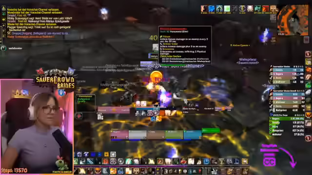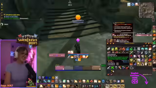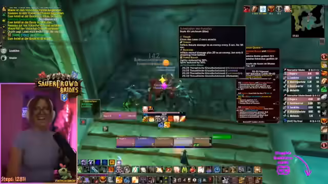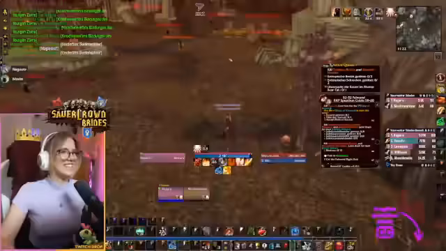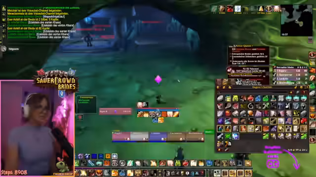 06:44:16Der Stream beginnt mit dem Einstieg in den Dungeon Maraudon. Nagura erkundigt sich nach dem aktuellen Stand der Gruppe und sucht nach einem bestimmten Gegenstand, dem Searing oder der Karren. Nachdem die Gruppe sich neu formiert hat, versucht Nagura, die verpassten Mobs am Eingang nachzuholen, was durch das Durchbuffen der Gruppe erleichtert wird. Der Fokus liegt darauf, die anfänglichen Gegner zu beseitigen und den Weg freizumachen.