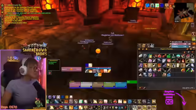 09:22:13Nach anfänglichen Verzögerungen und Questproblemen startet die Gruppe einen Fullrun durch den Blackrock Depths. Der Streamer ist auf Level 60 fokussiert und möchte sich nicht mehr ablenken lassen, was durch die Anwesenheit von über 100 Spielern erschwert wird. Gemeinsam mit seinem Maxim wird ein Vollzug durch den Dungeon gestartet, jedoch verlief die Questannahme zunächst holprig, da der Weg vergessen wurde und der Gruppenzusammenschluss schwierig war.