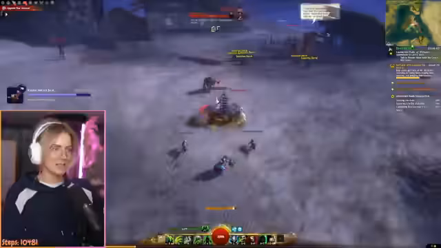 06:29:09Der Streamer spielt ein Story-Instance, bei der er die entführte Tochter eines Ministers retten soll. Dabei testet er verschiedene Ausrüstungsvarianten und Skillungen für seinen Necromancer. Er erwähnt seine Vorliebe für die Map Completion als Hauptziel, auch wenn dies ihn manchmal überfordert. Er diskutiert die Vor- und Nachteile des horizontalen Progressionssystems von Guild Wars 2 im Vergleich zu vertikalen Systemen wie in WoW.