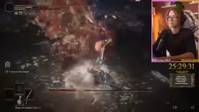Nach 464 Anläufen wurde der herausfordernde Bossgegner Malenia im Spiel Elden Ring bezwungen. Zuvor hatte der Spieler Probleme mit den Heilungseffekten und den Laserangriffen des Bosses. Nach diesem Erfolg konzentrierte sich der Spieler auf die Jagd nach weiteren Bossen in Limgrave und Liurnia, wobei er interaktive Karten zur Orientierung nutzte. Für den nächsten Tag wurden weitere Bosskämpfe geplant, nachdem ein längere Pause im Stream eingelegt wurde.