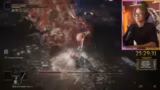 01:32:48Nach unzähligen Versuchen gelingt es dem Streamer, Malenia im ersten Versuch der Präsentation zu besiegen. Er erzählt von seiner früheren Erfahrung mit über 400 Versuchen im ersten Durchlauf und bewundert nun seinen schnellen Erfolg im Stream. Er zeigt Aufnahmen von anderen Spielern, die Malenia besiegen, um verschiedene Strategien zu vergleichen und zu lernen.