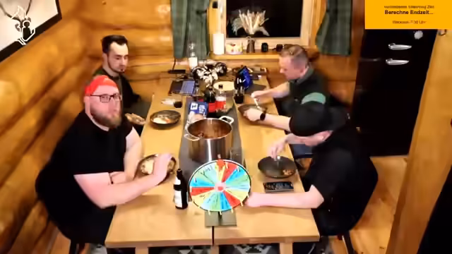 04:00:57Die Streamer beschließen, Kevin Wolter nicht als Einzelperson auf das Glücksrad zu nehmen, sondern nur Aktionen, die sie beide betreffen. Sie waren von einem Panzertape enttäuscht, da es nicht gut funktionierte. Die Idee, ausgepeitscht zu werden, wird als Provokation angesehen. Das Glücksrad wird mit neuen Ideen gefüllt, darunter ein Cringe-Moment und Bogenschießen. Es wird beschlossen, dass jedes Team eine Wurfaxt und einen Bogen mit drei Pfeilen erhält. Die Streamer diskutieren über weitere Optionen für das Glücksrad, wie zum Beispiel zwei Felder vor oder zurück. Sie einigen sich auf 'Wahrheit oder Pflicht' als neue Option und füllen das Rad entsprechend auf. Alex bereitet das Essen vor. Markus schickt ein Video, wie er im Grubenhaus den Stream guckt. Es wird entschieden, das Glücksrad nach dem Essen zu drehen. Es wird überlegt, ob der Teller noch inhaltlich stimmt.