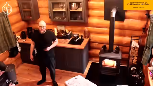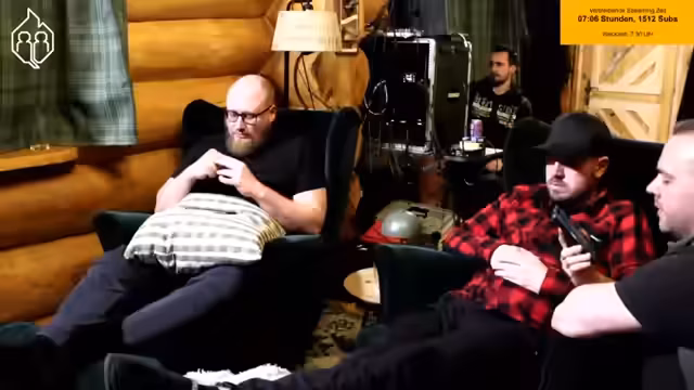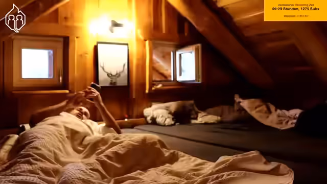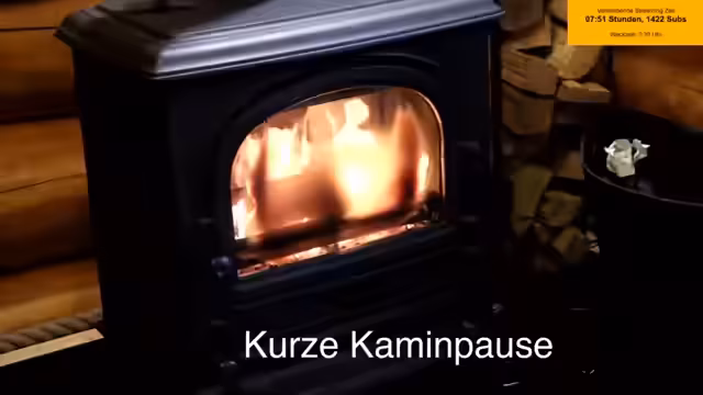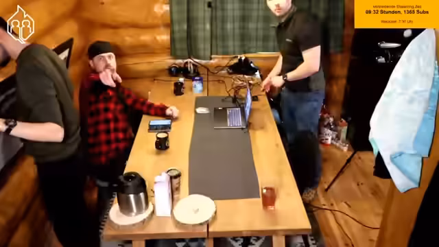 06:25:34Der Stream beginnt mit Aufräumaktivitäten im Blockhaus, wobei das Wegräumen von Ausrüstung wie Kabeln und Seilen im Fokus steht. Nach den anstrengenden Tätigkeiten wird eine Kaminpause angesetzt, in der die Kamera auf den Kamin gerichtet wird, um eine gemütliche Atmosphäre zu schaffen. Während der Pause wird bemerkt, dass ein Anruf verpasst wurde und die Teilnehmer sich auf die Fortsetzung des Streams vorbereiten.