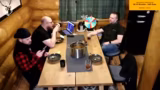 01:49:16Nachdem die Teilnehmer sich gegenseitig das Alter geraten haben und darüber diskutiert, wie alt sie aussehen, wird die interaktive Runde 'Wahrheit oder Pflicht' gestartet. Alex wählt 'Wahrheit' und wird gefragt, ob er fünf Minuten in der Plank-Position aushalten würde. Daraufhin wechselt das Spiel zu 'Pflicht', und Alex muss sich in einer vorgegebenen Position für 90 Sekunden an einer unsichtbaren Tür 'hinsetzen', was ihm offensichtlich schwerfällt.