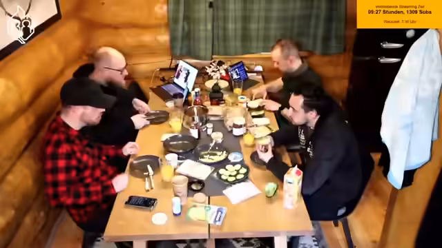 01:20:59Die Streamer planen das Essen für den Tag, verraten jedoch zunächst nicht, was gekocht wird. Dabei gehen sie von einem ausgeklügelten System aus, wonach das Abendessen vom Vortag als Mittagessen des Haupttages dient. Parallel dazu werden alltägliche Anekdoten geteilt, wie Axel, der den Stream schaut, und Marco S., der über überhöhte Supermarktrechnungen berichtet. Außerdem wird das Verhalten von Menschen kritisiert, die in der Nähe von Lärmquellen wie Sportvereinen oder Clubs wohnen und sich dann über die Geräusche beschweren, was als paradox angesehen wird.