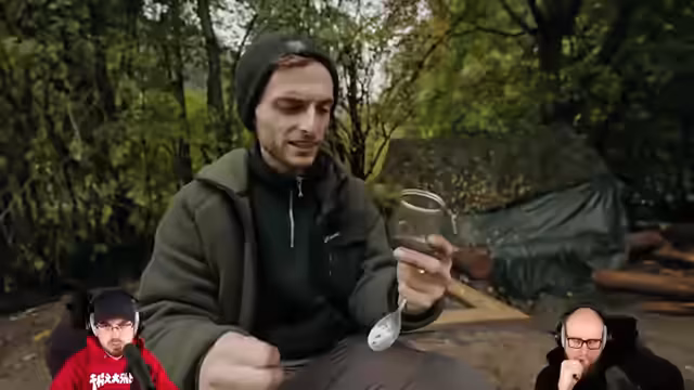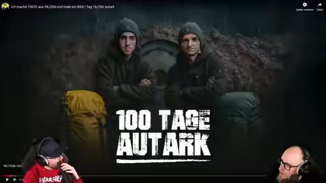00:09:02Die Streamer schauen sich ein neues Video der 'Real Life Guys' an, das den 15. Tag ihres 100-Tage-Survival-Projekts dokumentiert. Der Protagonist kämpft mit schlechtem Wetter, leeren Akkus und der Notwendigkeit, Brennholz zu beschaffen. Er plant, den Hot-Tub aufzuheizen und seine Haare mit Kastanien-Shampoo zu waschen. Die Tageschallenge besteht darin, eine Survival-Gesichtsmaske aus Naturmaterialien herzustellen. Während er versucht, Wasser für den Pool zu erwärmen, versucht er auch, Fische zu angeln, um seine Ernährung zu ergänzen. Die Diskussion dreht sich um die Effizienz der Wärmeerzeugung und die Überraschung über die Funktionalität des selbstgemachten Kastanien-Shampoos.