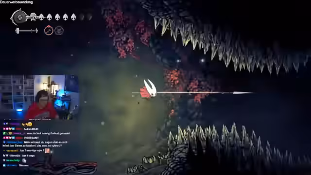 01:31:11Nach der theoretischen Analyse wechselt der Streamer zu Silksong. Er ist mitten in einem 'Platin Run in der Abfahrt' und erklärt den Chat, dass dies bereits der 100. Teil ist. Das Ziel ist es, ohne jeglichen Schaden durch eine schwierige Passage zu kommen, was die hohen Ansprüche des Runs verdeutlicht. Der Streamer befindet sich in einem Hochrisiko-Bereich und muss extrem vorsichtig agieren, um nicht den gesamten Run zu verlieren.