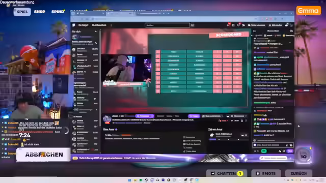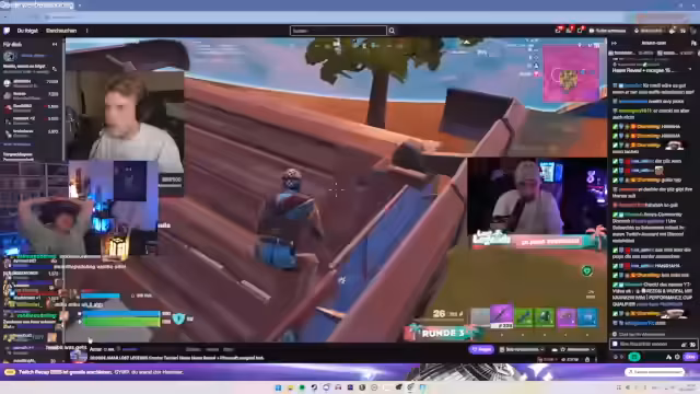 04:23:50Die Teilnehmer bereiten sich auf die verbleibenden zwei Runden des Fortnite-Cups vor. Diskutiert wird die aktuelle Platzierung und die Strategie für die nächsten Einsätze. Besonders wird auf die Leistung von Konkurrenten wie Halid eingegangen, der trotz anfänglich letzter Platzierung in den späteren Runden stark performte. Die Stimmung ist angespannt, aber optimistisch, da das Team sich hocharbeiten möchte.