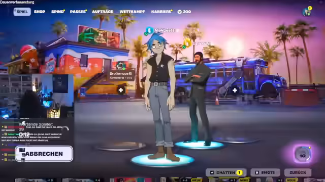 00:40:46Heute findet ein Fortnite Duo No-Build Cup mit 20.000 € Preisgeld statt. Der Streamer spielt mit Zayn (im Titel als @seyyn erwähnt). Sie diskutieren Skin-Auswahl (2D, Tyler), Landeplätze und Strategien: Aggressiv vs. Late-Game-Placement. Regeln besagen, dass Lightning Gun, Explosivstoffe und Autos verboten sind. Sie planen, auf Rotation und Heal-Bunker zu setzen und definieren das Turnier als Ausdauercup.