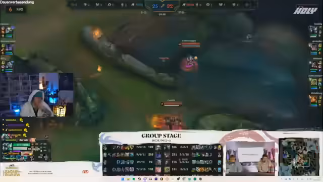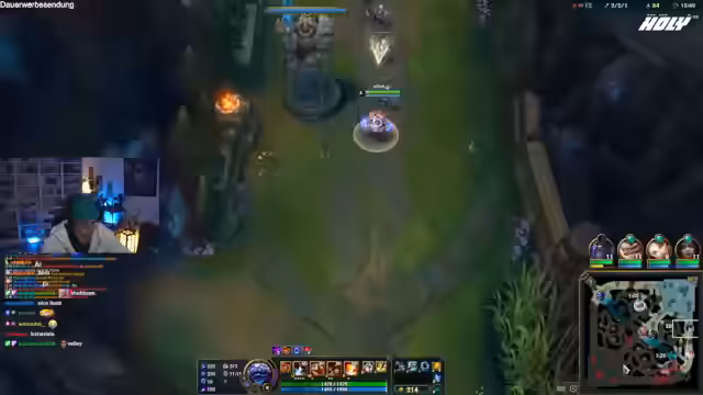 06:35:39Das Spiel dreht sich um die Kontrolle von Jungle-Objekten wie dem Elfenstein und die Koordination des Teams. Der Streamer gibt klare Anweisungen für das Vorgehen, etwa das Fangen des gegnerischen Junglers oder das Ziehen der Wave. Es werden potenzielle Fight-Situationen analysiert und geplant, wie man diese nutzen kann, um den Gegner zu eliminieren oder den eigenen Vorteil zu sichern. Die Kommunikation zielt darauf ab, die Gegner zu überraschen und zu isolieren.
