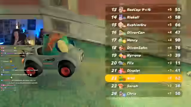 01:21:45Der Streamer startet eine neue Runde in Mario Kart World und wählt den Strecken-Modus 'Baby Wiggy'. Er gibt einen neuen Raum-Code aus und informiert über die Teilnehmerliste. Es werden Wetten mit Kanalpunkten gestartet und ein Grand Prix-Modus ins Auge gefasst. Die erste Runde beginnt im KO-Tour 150 mit 24 Spielern, wobei der Streamer und die Chatter um die Plätze kämpfen.