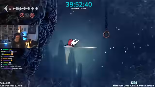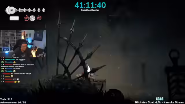 00:30:00Der Streamer konfrontiert sich mit erheblichen Gameplay-Herausforderungen in Silksong, einschließlich eines komplexen Gebiets namens Sündenstraße. Dabei zeigt er seine Frustration über die Schwierigkeiten des Spiels, bleibt aber humorvoll und interaktiv mit dem Chat. Der Streamer betont auch die Wichtigkeit der Zuschauerinteraktion und stellt fest, dass sein Chat sehr aktiv sei, unabhängig von der Zuschauerzahl. Dies zeigt seine Fähigkeit, selbst unter schwierigen gaming-Bedingungen ein starkes Publikum zu unterhalten zu binden.