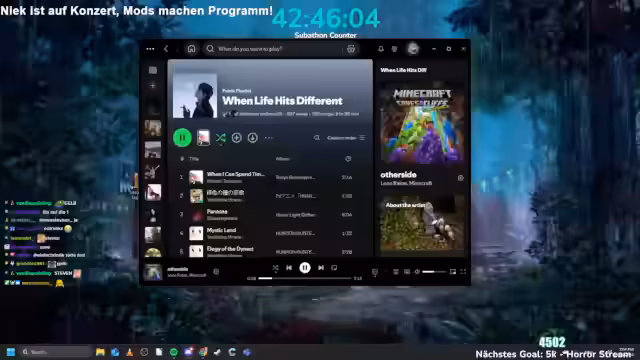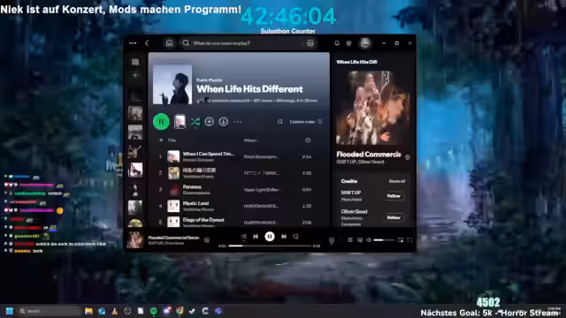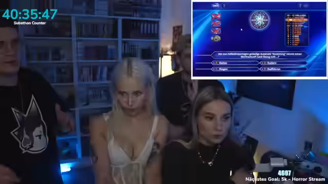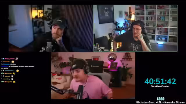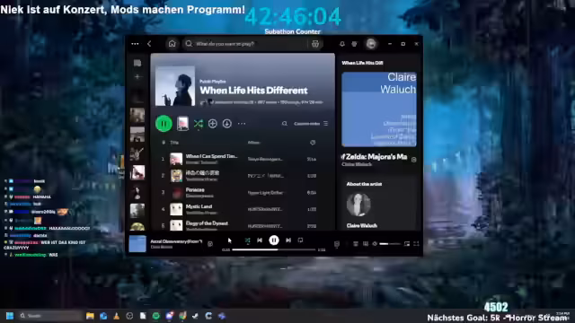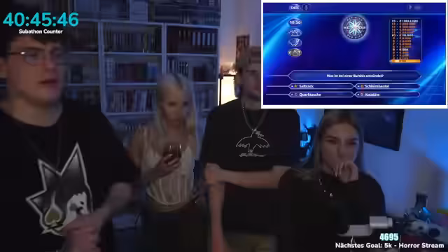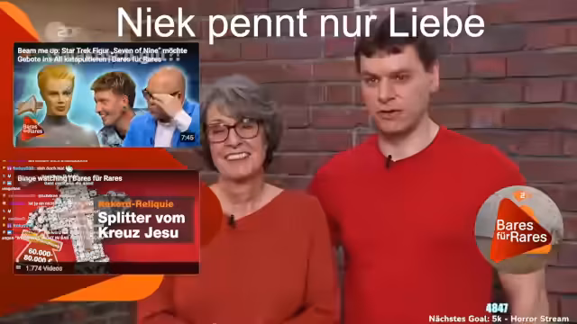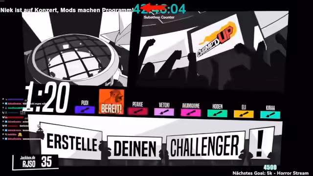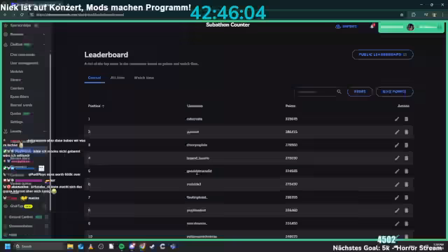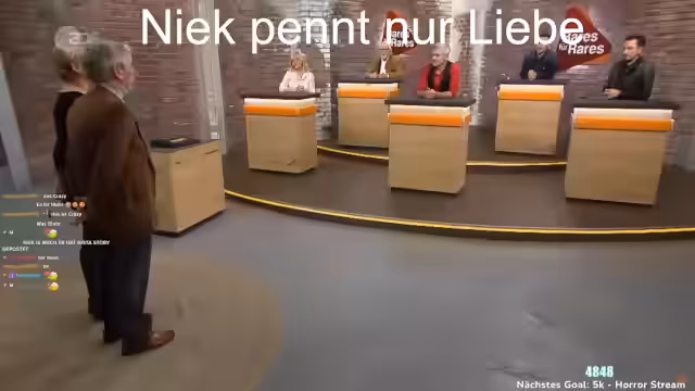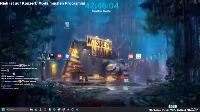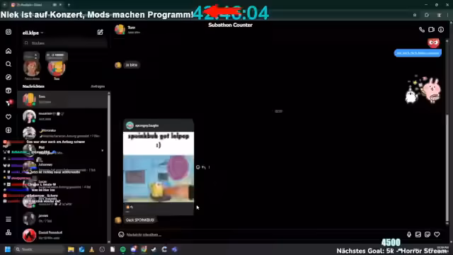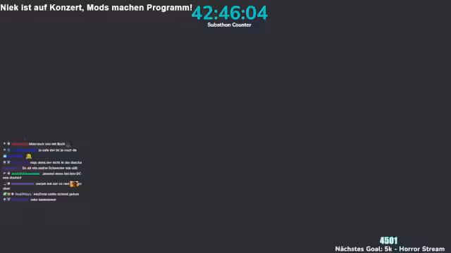 04:41:59Ich bedanke mich für 4.500 Zaps und kündige einen Karaoke-Abend an, bei dem ich mein Bestes geben werde. Ich versuche, Feister und Tamina nach dem Konzert für den Karaoke-Abend mitzunehmen. Wenn es heute nicht klappt, wird es auf morgen verschoben. Ich versuche, mein Bestes, ich versuche es direkt einzulösen. In der Zeit, in der ich auf dem Konzert bin, werden meine Moderatoren den Stream übernehmen. Der Timer wird angehalten, solange ich nicht vor dem Stream sitze. Meine Mods machen Content, während ich auf dem Konzert von Edison Ray bin, das ungefähr zweieinhalb bis drei Stunden dauert. In der Zeit wird Content kommen, und die Zuschauer können im Stream mit den Mods labern. Das nächste Goal ist bei 5000 Subs, und das ist ein gesamter Tag, nur Horrorspiele spielen. Ich bedanke mich für 4500 Subs und sage nur lieber an euch, Chat. Es wurde mir schon eine Domina geschickt. Ich kümmere mich auch nochmal um eine Domina-Chat, vielleicht für ein späteres Goal. Ich überlasse Eli den Stream und gehe duschen und aufs Konzert. Viel Spaß mit Eli, seid nett zu Eli, wirklich. Jeder wird bestraft, wenn er nicht nett zu Eli ist. Von der Domina. Von der Domina. Ich muss mir erst meine Bildschirme arrangieren. Die anderen Mods können ja auch reinkommen. Ich weiß nicht, ob ihr den Call seht. Der Call heißt geheim bei Sub only ist ganz unten geheim. Ich weiß nicht, ob ihr den seht. Wenn ihr den nicht seht, dann geht in den anderen Call. Ich ziehe euch rein. Ah ja, genau, Nick ist weg hinschreiben. Den Timer pausieren natürlich.
