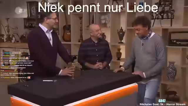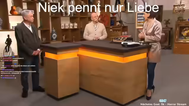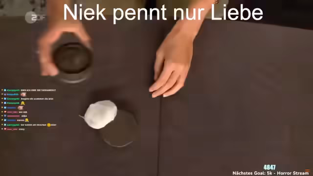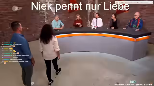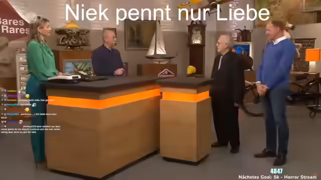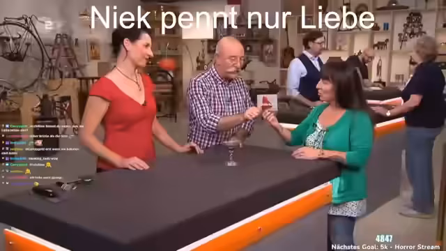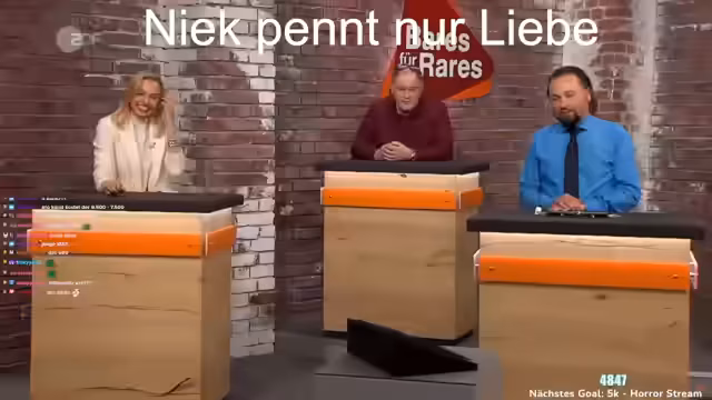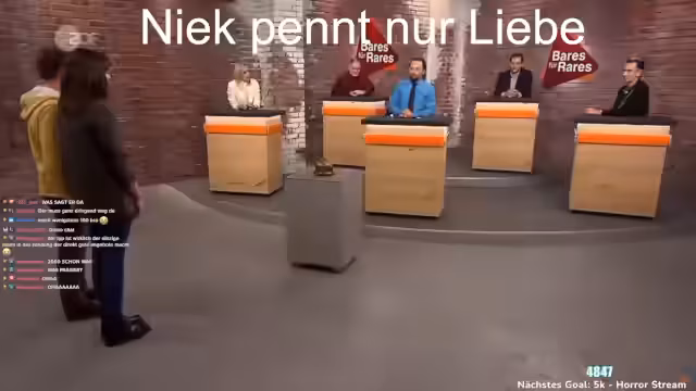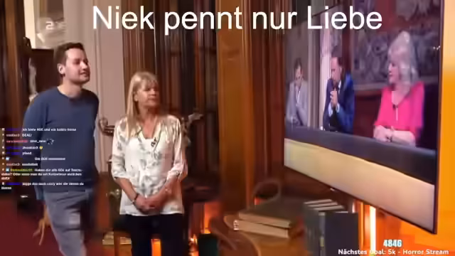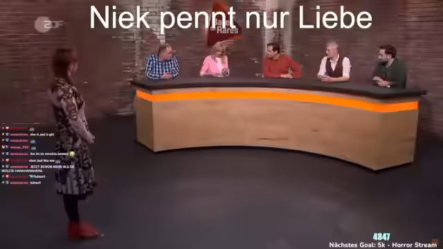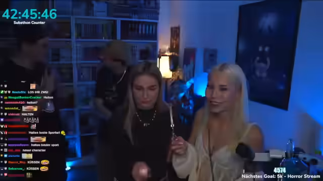 09:28:47Es wird überlegt, ob Karaoke über YouTube oder Roblox stattfinden soll, wobei der Chat sich mehrheitlich für beides ausspricht. Es wird die Kette von GirlCat.shop beworben und ein Datum für eine Ankündigung genannt. Die Vorfreude auf den Karaoke-Abend mit den Gästen wird betont und die beiden Streamer stimmen sich darauf ein. Es wird festgestellt, dass die Situation außer Kontrolle geraten ist, da 50 Subs gespendet wurden und ein Kuss ansteht. Es wird betont, dass noch nie ein Mann mit Zunge geküsst wurde. Es wird über die Konsequenzen diskutiert und Kaugummi angeboten. Es wird überlegt, ob der Kuss nur ein Troll war und ob es eine Mundspülung geben soll. Henke wird aufgefordert, vorbeizukommen, und es wird über die Vorliebe für die Korne gesprochen. Es wird überlegt, wessen Airwaves das sind und der Chat wird als süß bezeichnet.