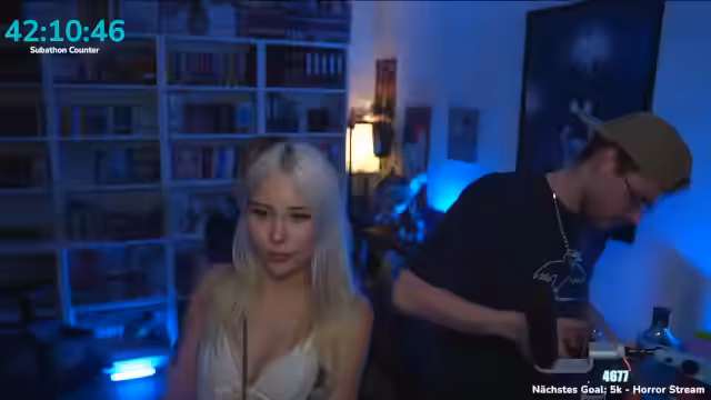 11:50:39Ein unplannedes Gespräch über private Angelegenheiten beginnt, als der Streamer plötzlich das Thema seiner dritten Katze aufgreift und seinen Zustand nach dem Konsum von vier bis fünf alkoholischen Getränken schildert. Er wird gefragt, ob er noch live gehen kann, bevor er über seinen Wohnort zwischen Köln und Bonn spricht. Während des Streams macht er Witze über den Schlafbedarf seiner Mitstreiter und taucht dann in ein Horrorspiel ein, das sowohl Verwirrung als auch Aufregung im Chat auslöst.