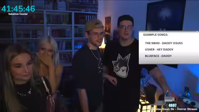 09:49:19Nach dem intensiven Kuss-Event fand das Karaoke-Event statt, bei dem verschiedene gesungen wurden. Der Streamer nannte mehrere Titel wie 'I kissed a boy', 'If you wanna be my lover' und 'Heartbreaker'. Die Zuschauer wurden ermutigt, mitzusingen und Vorschläge für Songs zu machen. Der Streamer erwähnte auch, dass es unerwartet viele Zuschauer gab und er die Situation als wild und aufregend beschrieb. Er bedankte sich bei den Zuschauern für ihre Teilnahme und Unterstützung während des gesamten Abends.
