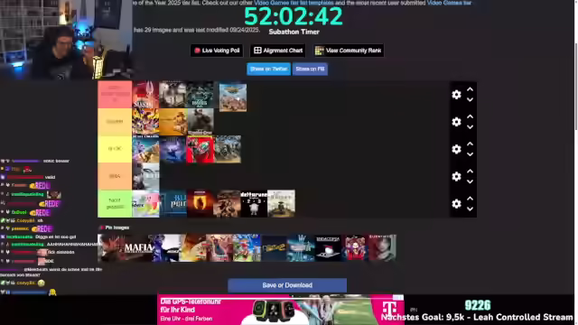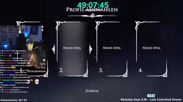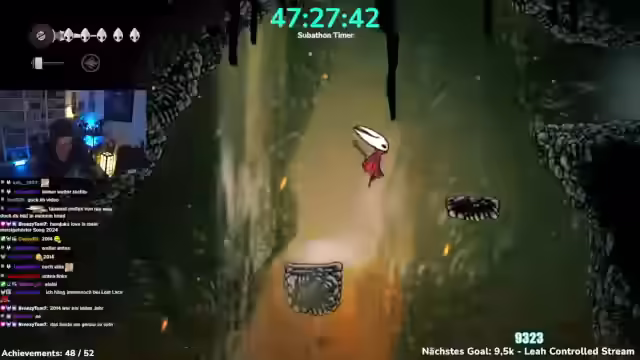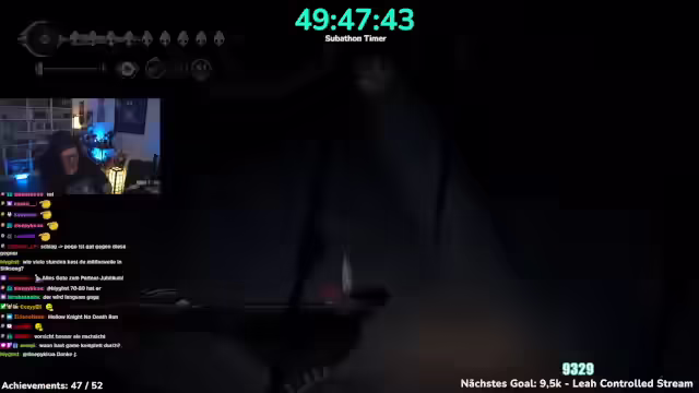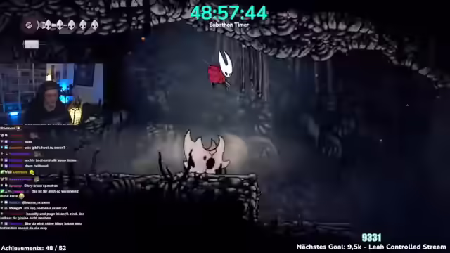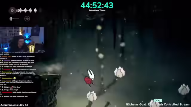 03:41:40Nach einem Neustart befindet sich der Charakter auf einer Bank und muss einen Weg finden, herunterzukommen, wobei ein Shortcut vermutet wird. Es wird ein Memento gesucht und der Name des Objekts, das verpasst wurde, erfragt. Ein interner Nerd-Kampf um Silksong wird erwähnt. Es wird bestätigt, dass Seth bereits getroffen wurde. Nach 62 Monaten Support im Tier 1 wird Nu gedankt und um einen Kuss gebeten. Es wird das Jägerin-Memento abgeholt, was zum nächsten Achievement führt, wodurch nur noch vier übrig bleiben. Nach dem ersten Spielstand in Hollow Knight Silksong wird zum zweiten Spielstand gewechselt. In der Zwischenzeit soll abgestimmt werden, ob ein Steal Soul Run (das Spiel ohne einmal zu sterben durchspielen) oder ein Speed Run (das Spiel in unter fünf Stunden durchzocken) gemacht werden soll. Der Streamer äußert seine Vorfreude auf die bevorstehende Herausforderung und den erwarteten Schwierigkeitsgrad. Es wird ein klassisches Spiel aus 5 Stunden begonnen und eine Route für den Speedrun benötigt, um keine Zeit zu verschwenden. Es wird geklärt, ob der Timer pausiert, wenn das Spiel pausiert wird. Der Streamer startet den Speedrun mit dem Ziel, das Spiel in 5 Stunden durchzuspielen, und bedankt sich für den Support.