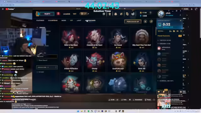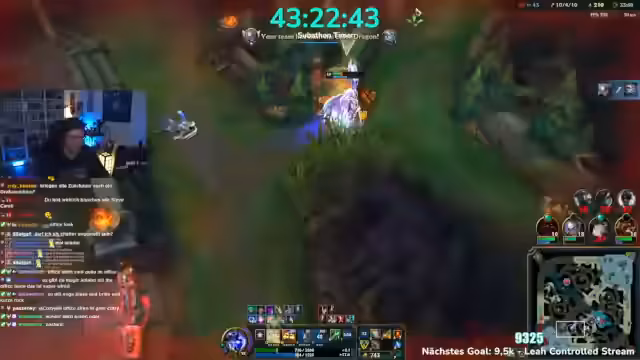 10:28:09Nach einer extrem frustrierenden und verlorenen Runde beendet der Streamer seine League-of-Legends-Session. Er dankt seinen Zuschauern für die Teilnahme an dem fast 10-stündigen Stream und gibt bekannt, dass er sich am nächsten Tag für einen 5-Stunden-Run zurückmelden werde. Als mögliche Inhalte nach dem geplanten Trophäen-Gewinn nennt er Sekiro oder ein anderes, entspannteres Koop-Spiel.