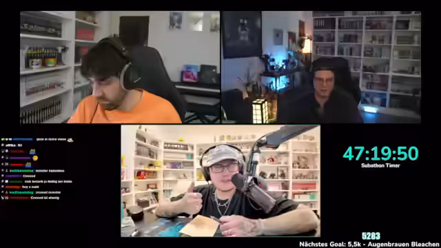 03:21:24Es wird über das Subgoal von 5000 gesprochen, welches einen Horror-Stream-Tag vorsieht. Es wurden bereits viele Horror-Games rausgesucht und mit den Mods gecheckt, welche gespielt werden sollen. Es gab einen Moment während des Sabathons, in dem man sich überlegt hat, abzubrechen. Ein weiteres Subgoal beinhaltet das Bleachen der Augenbrauen. Es wird festgestellt, dass sich eine Person im Stream nicht für das Leben einer anderen Person interessiert. Es wird über ein neues Piercing gesprochen, welches seit drei Monaten existiert. Eine Person findet es krank, dass sich jemand nicht für ihr Leben interessiert und betont, wer die Freundschaft am Laufen hält. Es wird über ein abgeheiltes Piercing geredet und ob ein Ring eingesetzt werden kann. Eine Person gibt an, sensibel zu sein und Dinge langsamer zu verarbeiten. Es wird über Beleidigungen der Eltern gesprochen und dass diese nicht verheiratet waren, als die Person gezeugt wurde. Es wird erwähnt, dass man nicht zusammen auf der Gamescom war. Es wird über einen Plottwist gesprochen und dass ein Paket gekommen ist.