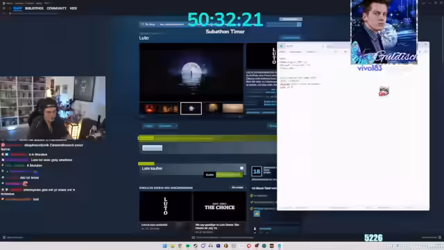 01:36:19Die Vorbereitungen für den Horrortag laufen, und der Streamer fragt den Chat, ob sie bereit sind. Es werden verschiedene Gruppen im Chat (rechts, links, mitte) nach ihrer Bereitschaft gefragt. 'Echoes of the House' wird als erstes Horrorspiel ausgewählt. Der Streamer kauft und installiert das Spiel. Es wird humorvoll kommentiert, dass es trotz der hellen Tageszeit (14:45 Uhr) gruselig sein soll, und es werden Maßnahmen ergriffen, um die Umgebung dunkler zu machen (rote Lichter, Vorhänge zu). Der Streamer scherzt über den 'Bastard Award' bei den Stream Awards und den 'Motherfucker of the Year'-Award. Die Podcast-Aufnahme um 16 Uhr wird erwähnt. Der Streamer bereitet sich darauf vor, das erste Spiel des Horrortags zu starten, und möchte die Spiele danach bewerten. Er sucht nach der Spielzeit von 'Echoes of the House' und findet heraus, dass es etwa 42 Minuten dauert. Ein kurzes YouTube-Intro wird aufgenommen, in dem der Horrortag und das erste Spiel vorgestellt werden. Der Streamer startet das Spiel und kommentiert die Grafik und die Atmosphäre. Er erkundet das Haus und interagiert mit der virtuellen Oma. Die Stimme der Oma wird als ungewöhnlich beschrieben. Der Streamer untersucht die Küche und findet eine Flashlight. Es wird kurz auf ein Minecraft PvP-Spiel eingegangen, in dem der Streamer einen Zuschauer namens Michael getötet hat. Der Streamer schaut sich den Clip von Michaels Perspektive an und kommentiert die Situation humorvoll. Es wird kurz über Beleidigungen im Spiel gesprochen. Der Streamer kehrt zum Horrorspiel zurück und setzt die Erkundung des Hauses fort.
