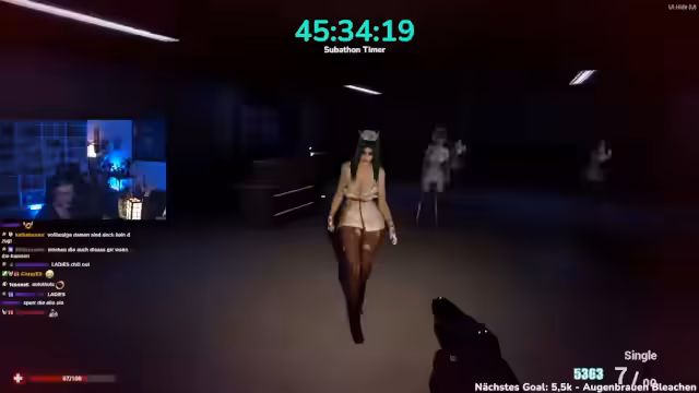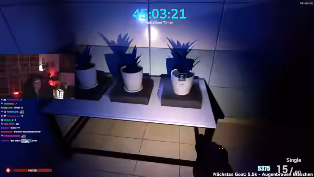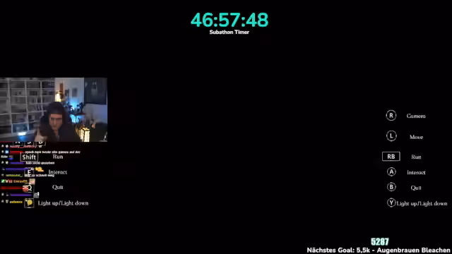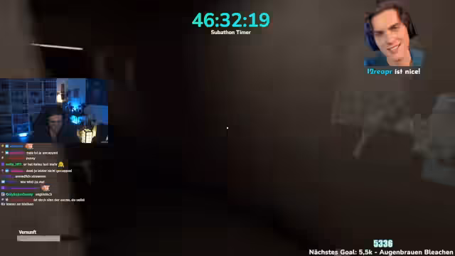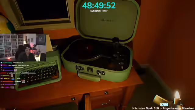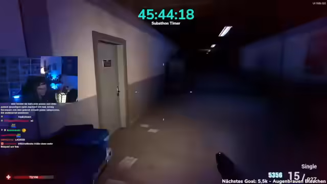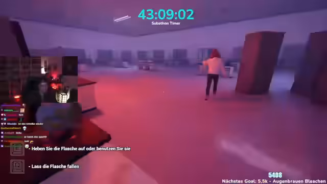 05:39:19Es wird erklärt, dass der Prosub-Timer von fünf Minuten auf eine Minute reduziert wurde, da es sonst zu viel werden würde. Der Timer geht nicht runter, daher muss nach einer Woche überlegt werden, wie man es für die nächsten Tage handhaben soll. Der Chat gibt den Hinweis, dass es nicht nötig ist, nach draußen zu gehen. Um im Spiel voranzukommen, muss der Streamer die Lichter ausmachen, um schlafen gehen zu können. Es stellt sich heraus, dass noch ein Licht eingeschaltet ist, welches gefunden und ausgeschaltet wird. Im Spiel muss der Streamer erst seltsame Ereignisse beseitigen, bevor er schlafen kann. Es wird ein Teddybär als seltsames Ereignis identifiziert. Nachdem die Lichter ausgeschaltet wurden, kann der Charakter schlafen.