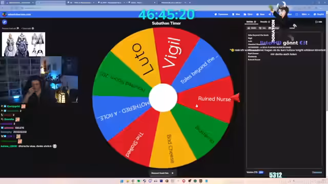 05:03:29Das aktuelle Spiel stürzt ab, was zu Frustration führt. Der Streamer fragt den Chat, ob er das Spiel neu starten und den Tag wiederholen soll, oder ob er zu einem anderen Spiel wechseln soll. Nach einer Abstimmung entscheidet sich der Streamer für ein neues Spiel, da der Aufbau des vorherigen Spiels zu lange gedauert hat und das ständige Hin- und Herlaufen als langweilig empfunden wurde. Es wird kurz Hollow Knight erwähnt. Der Streamer kündigt an, dass als nächstes ein Horror-Game gespielt wird und hofft, dass es nicht 'Ruined Nurse' sein wird. Durch ein Spin-Wheel wird das nächste Spiel zufällig ausgewählt.